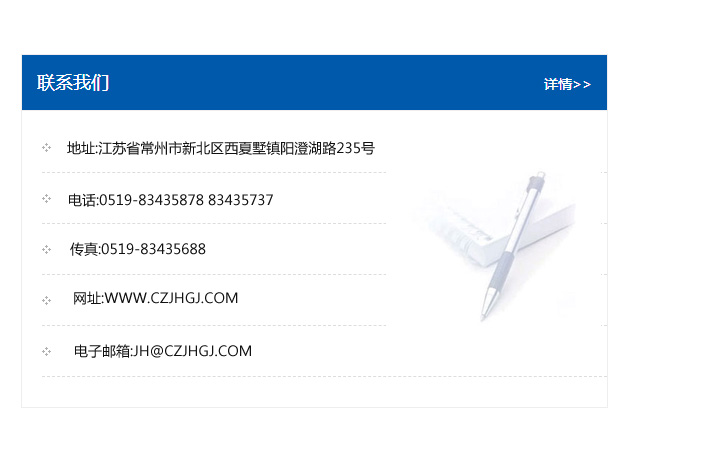 地址:常州市新北區友邦商務大廈1幢16、17層  電話:0519-85101652  傳真:0519-85112595  郵編:213022  網址:www_cz-jiayue_cn.zhyszsyjh.com  郵箱:xiajifengaa@163.com